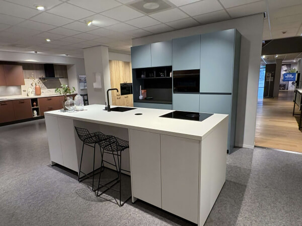 De prijs zoals vermeld op deze pagina, is de prijs voor de complete showroomkeuken. Dit betekent dus dat je de keuken koopt zoals hij in de winkel staat, inclusief werkblad en keukenapparatuur. We begrijpen dat je de keuken wellicht nog iets meer naar eigen smaak wilt samenstellen.